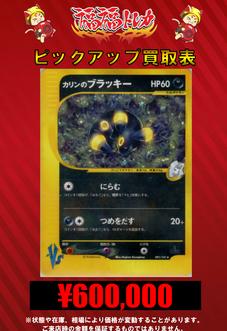 | 旧裏 | 火 | リザードン | ★ | 第一弾拡張パック | ¥600,000 | |