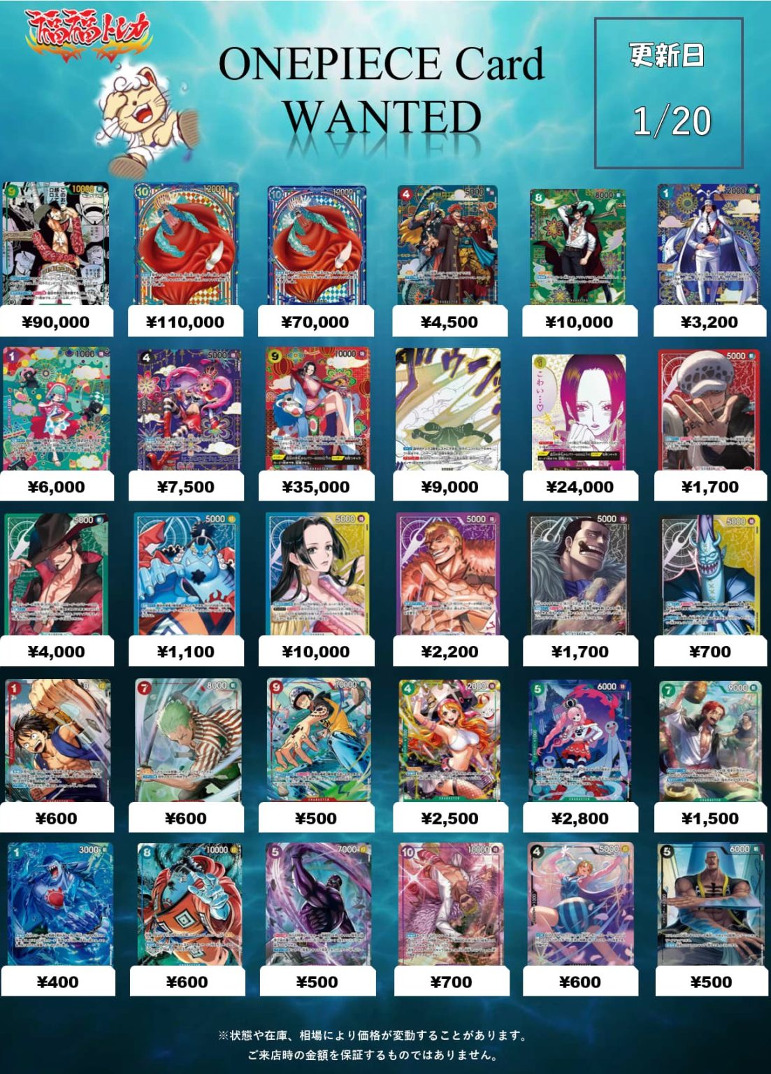 | 青)OP03)SEC◆背景原作)そげキング ※左下ONEPIECEロゴ有り | スーパーパラレル | 青 | OP03-122 | ¥250,000 |