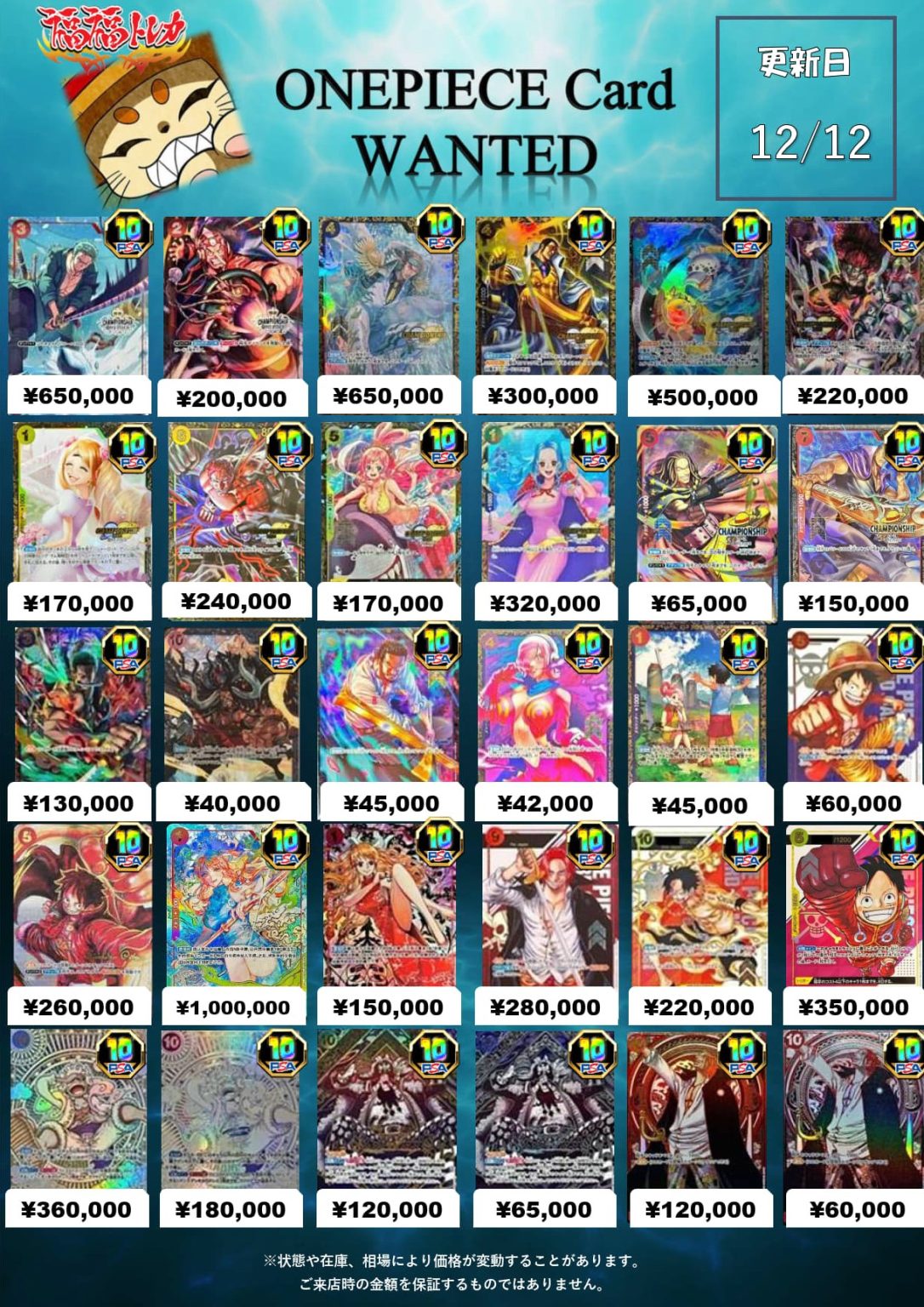 | 赤)フラッグシップバトル)SEC◆Japanシリアル入)シャンクス | プロモ | 赤 | OP01-120 | ¥200,000 |