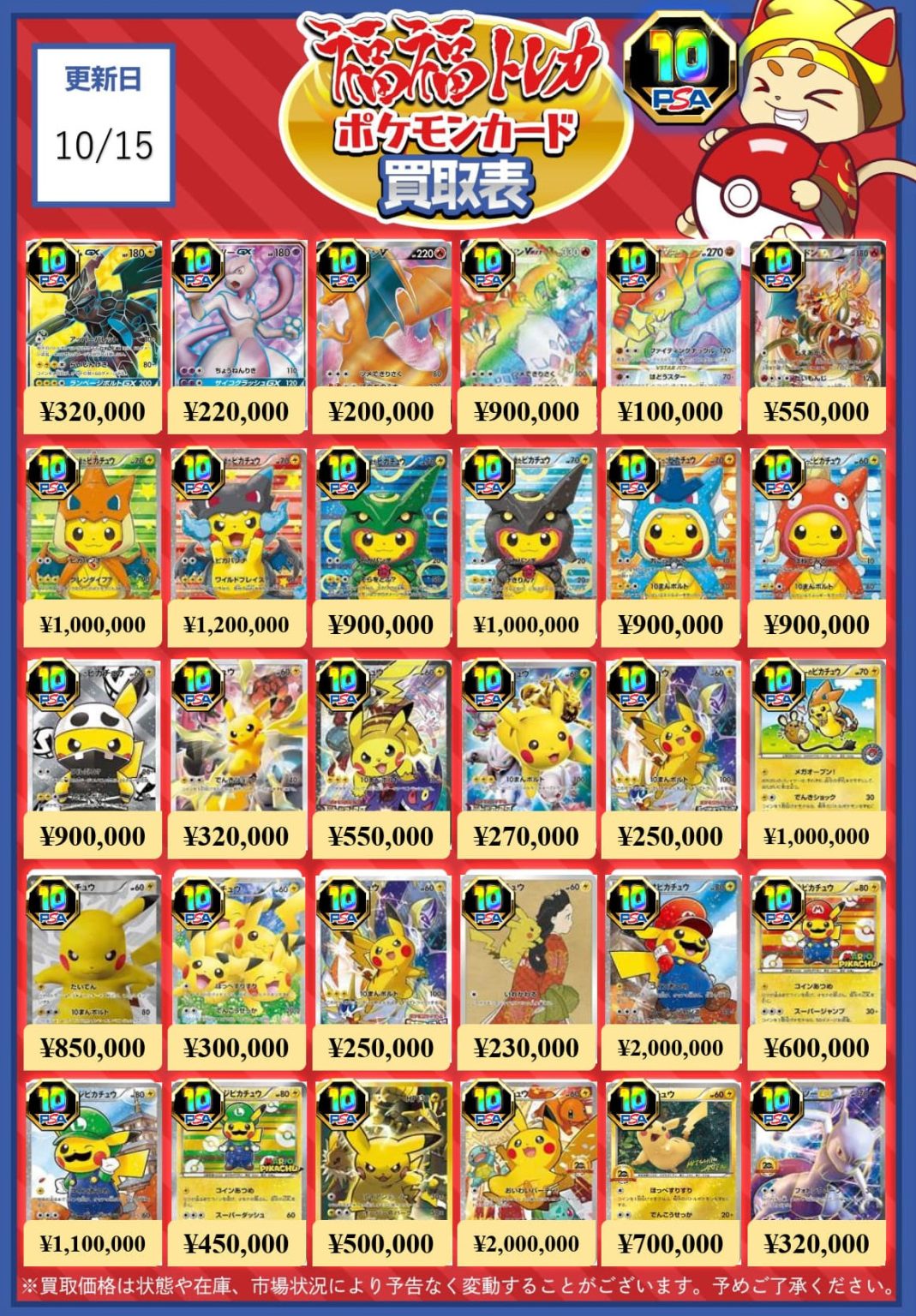 メガトウキョーのピカチュウ | 204/XY-P | PSA10 | ¥1,000,000 |