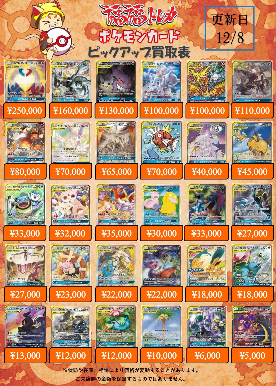 買取価格表