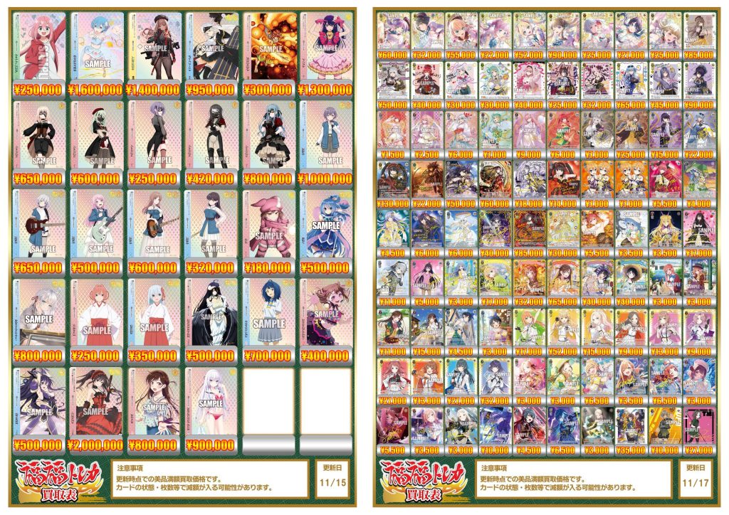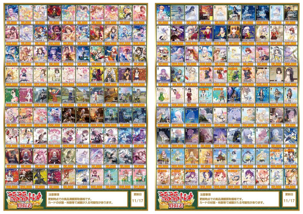 ヴァイスシュヴァルツ買取価格表